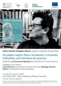 Además, se encontrará con estudiantes y docentes en el encuentro «Fabio Andrés Delgado Micán incontra Venezia», un espacio de intercambio cultural donde se abordarán temas como la violencia, la poesía y la memoria desde el sur global.